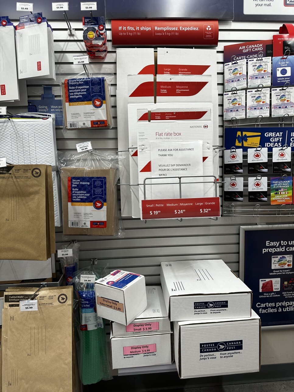 캐나다 포스트를 방문하면 배송 박스들을 구매할 수 있어요.