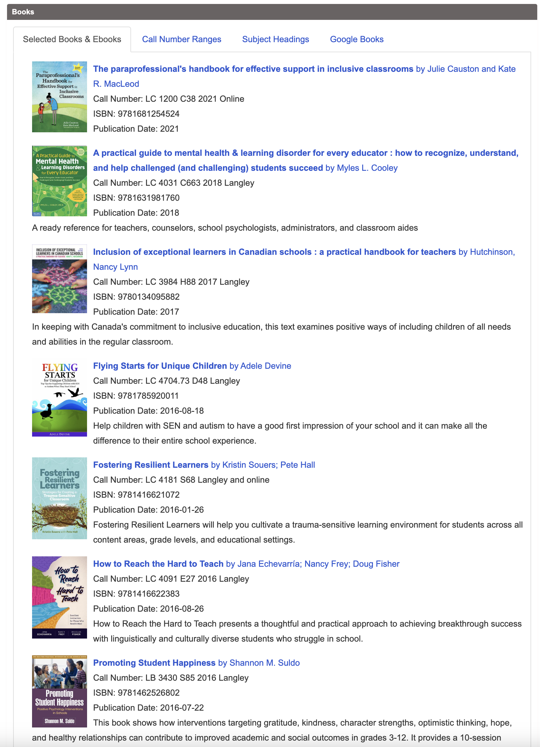 - "Inclusion of Exceptional Learners in Canadian Schools: A Practical Handbook for Teachers" by Nancy Lynn Hutchinson